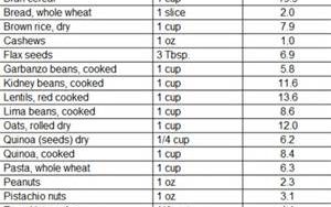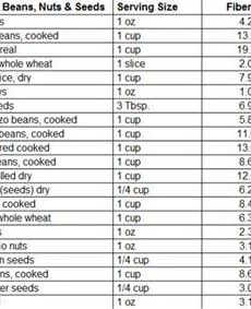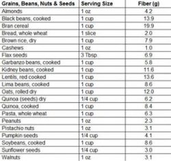 Grains, Beans, Nuts and Seeds Fiber Chart